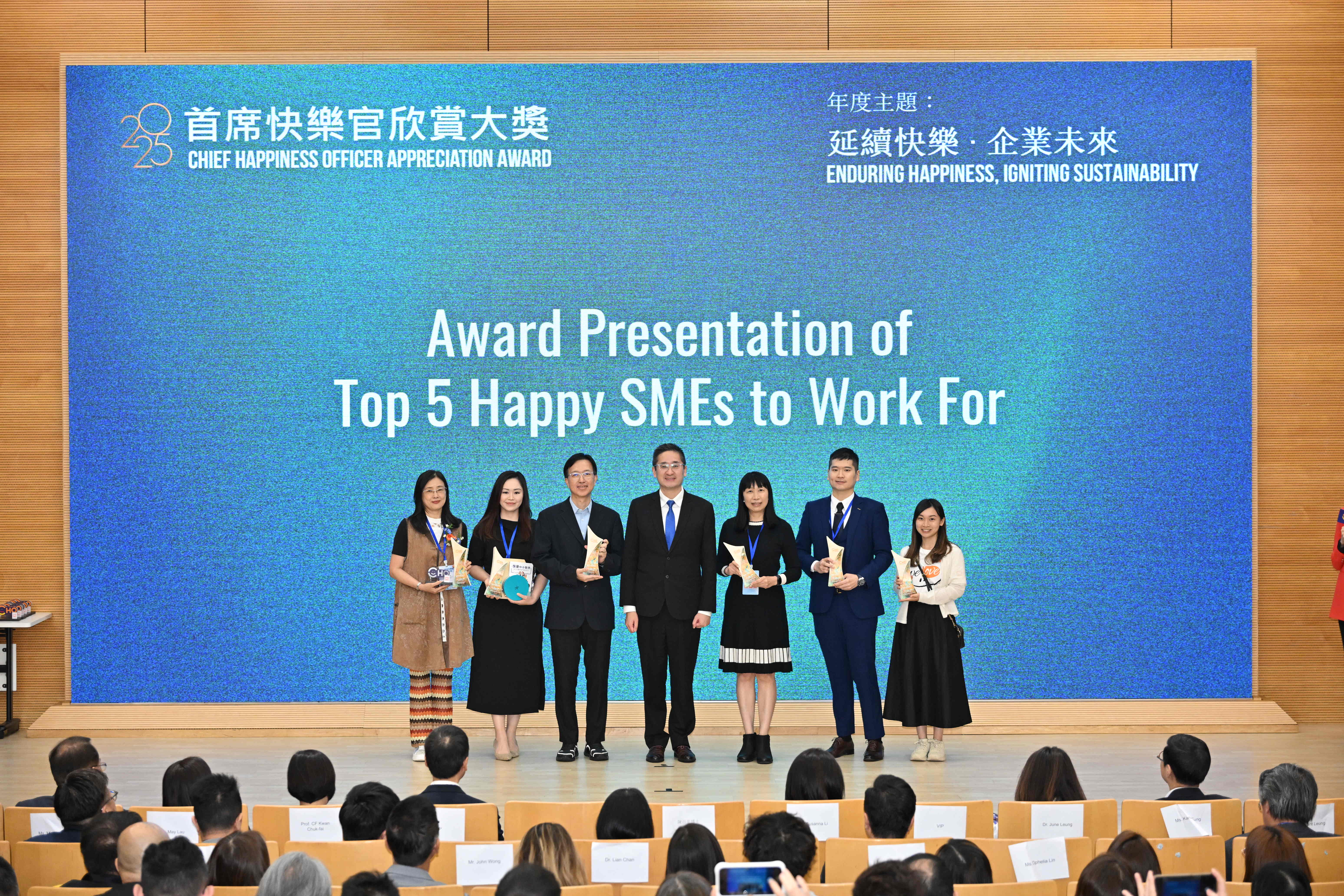 商務及經濟發展局副局長陳百里博士,JP擔任主禮嘉賓並致辭,他表示:「衷心感謝首席快樂官協會團隊,過去五年來透過這個平台,提升了香港的整體開心指數。快樂企業不僅僅是一句口號,它是一種文化和理念,代表著企業對員工和社會的態度。」他強調,員工的快樂與企業的盈利息息相關,並能進一步促進香港整體經濟的增長。