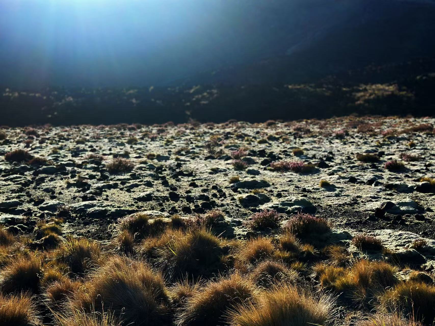 凌晨五點,National Park 村的旅館裡還靜得出奇。窗外是寒冷的霧氣,我們穿上防風衣,整理背包、登山杖和水壺,準備出發。天色尚未亮,我們先將車開向徒步的終點——Ketetahi Carpark。沿途的山路靜謐而神秘,夜色深沉,沒有一絲光污染。天空布滿繁星,浩瀚得幾乎讓人窒息,仿佛隨著車速在緩緩移動。那一刻,我才真正理解什麼叫「斗轉星移」,整片星空仿佛在隨旅程轉動,而我們只是其中一葉扁舟。那是我人生中見過最滿的星空,沒有之一,比南島任何一次仰望銀河的震撼都要讓心顫動。