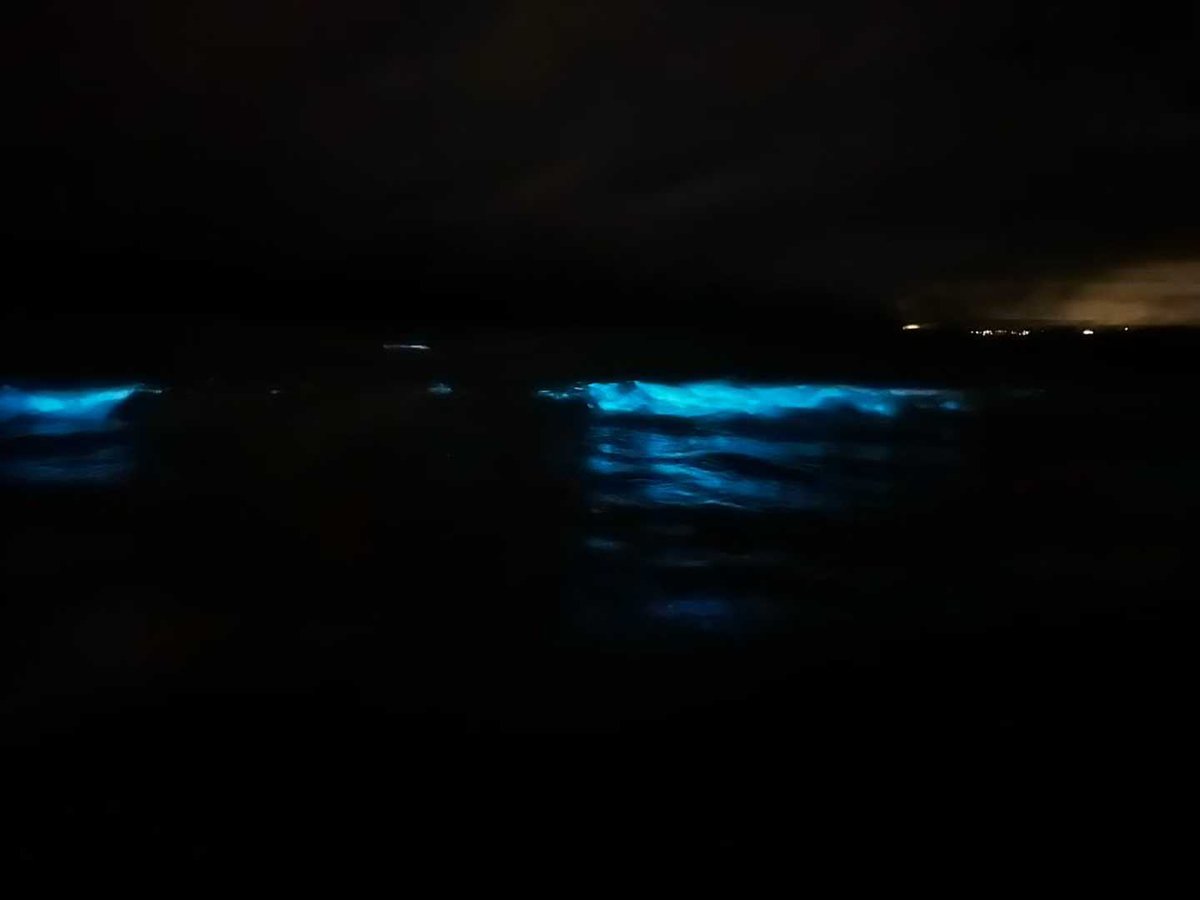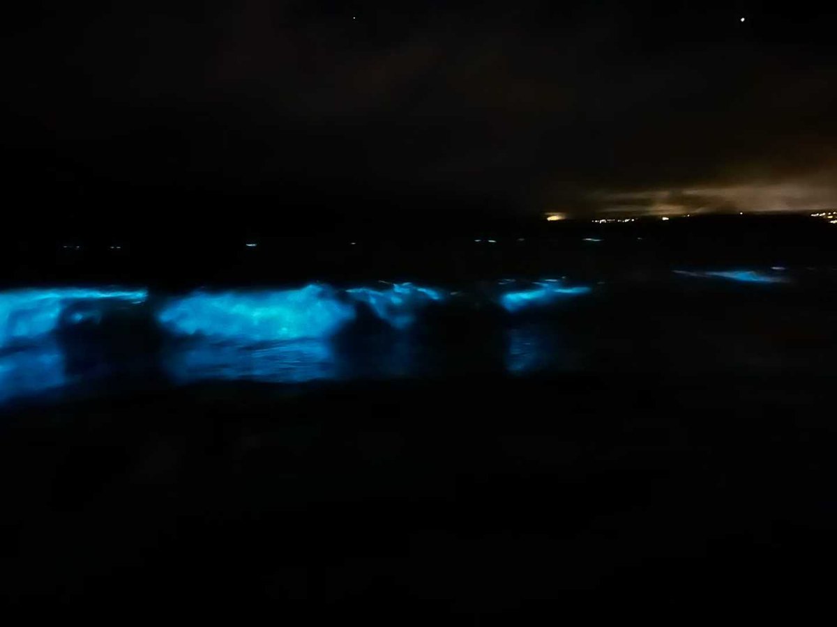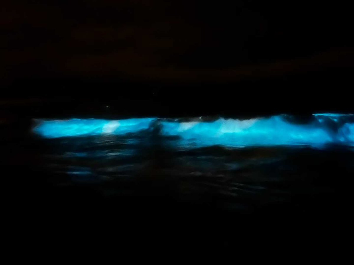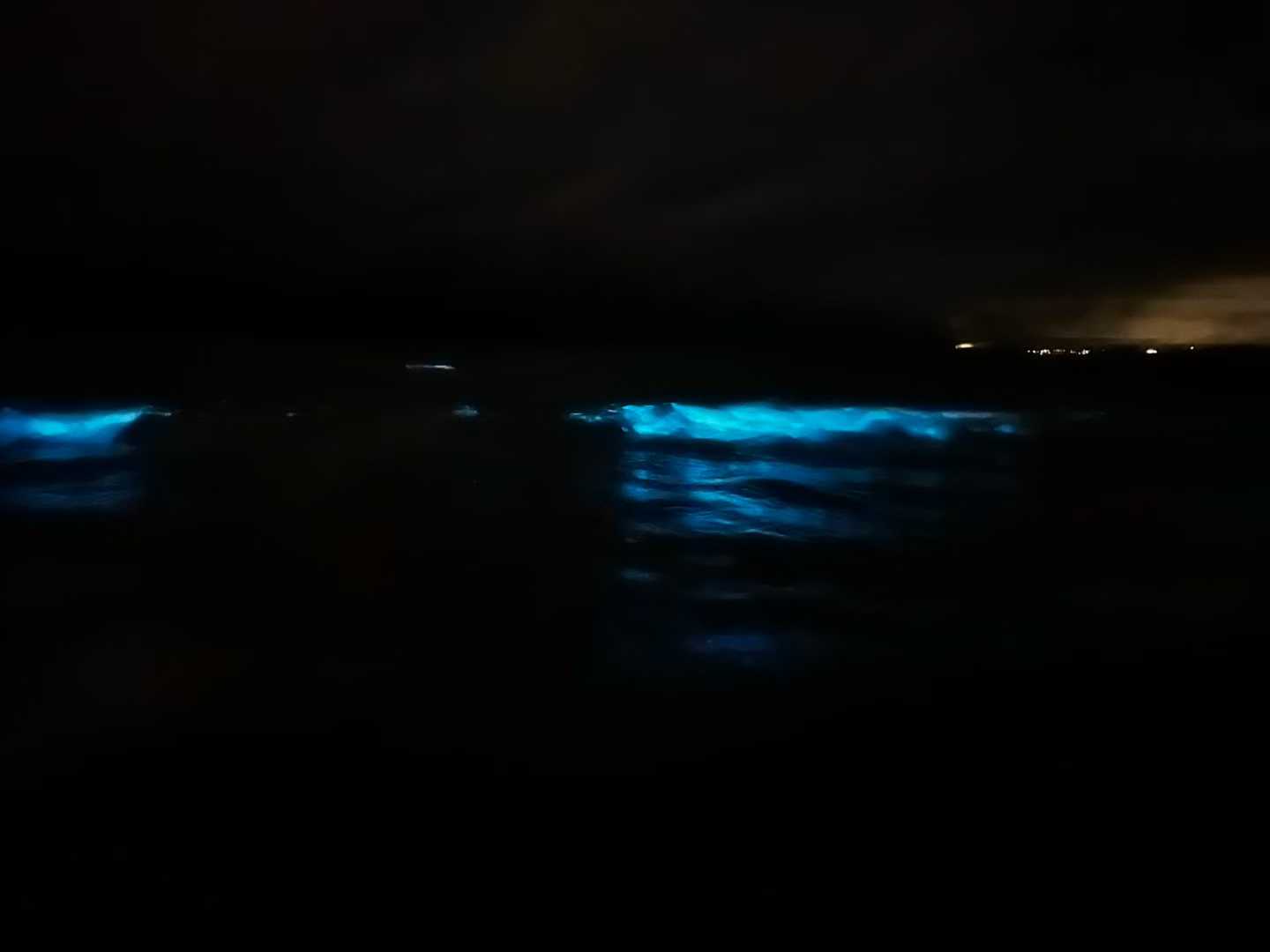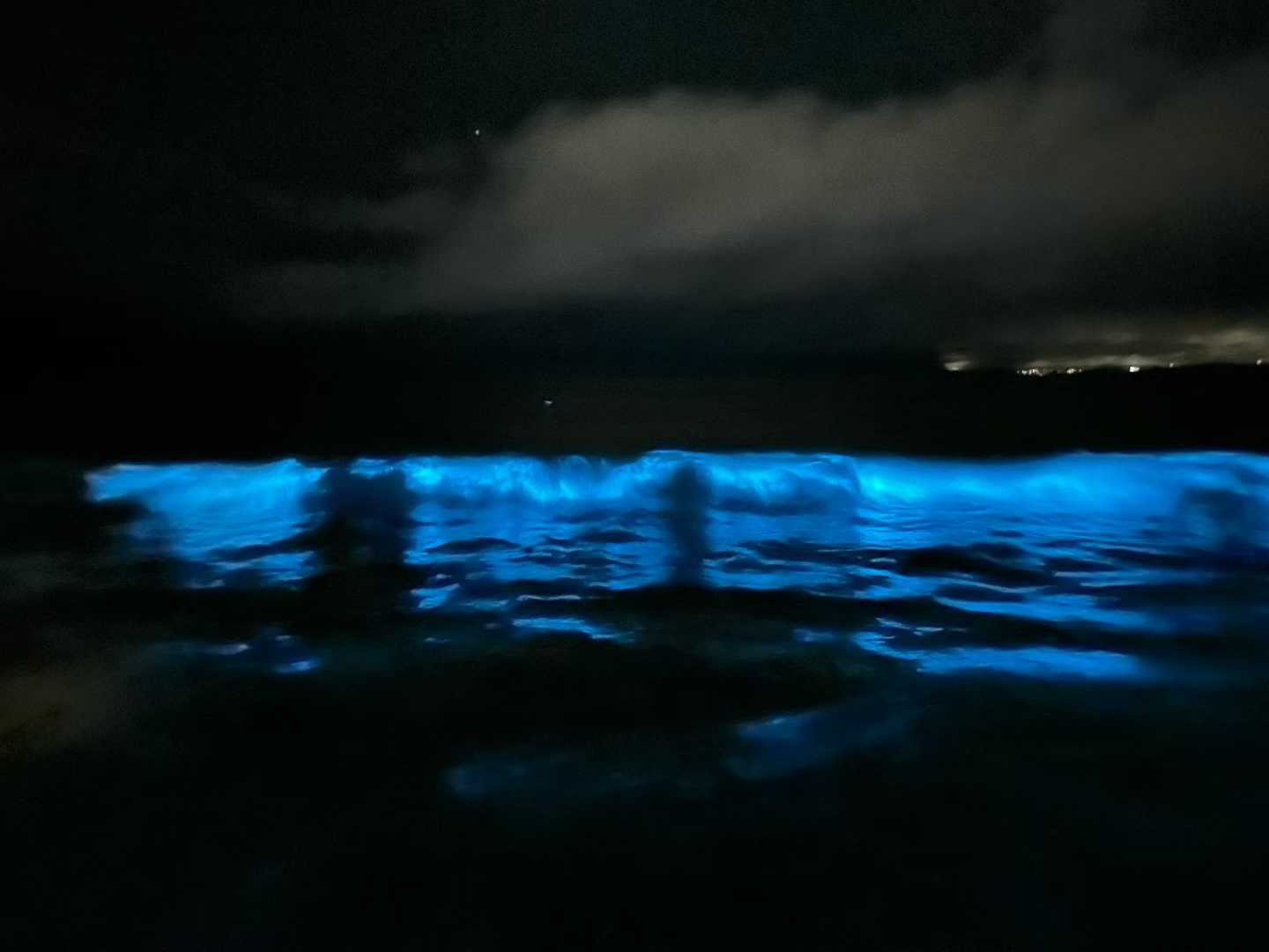 整個海灘在夜裡閃著幽藍的光。浪花推來、退去、又推來,每一波都帶著成千上萬的藍點,一起亮,一起滅。像無數微小的生物,在用自己的方式照亮黑暗。
